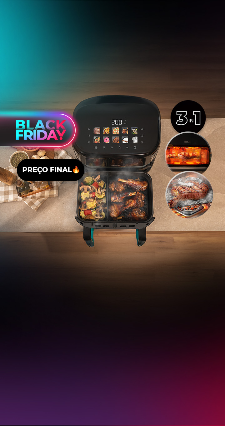 Com o grelhador duplo, obtenha o ponto perfeito sem virar os alimentos.