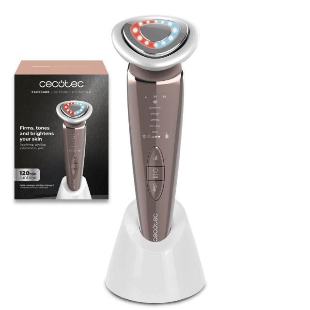 FaceCare LightSonic HotN'Cold: Tônico facial com 5 modos, EMS, função de calor e frio, luz vermelha e azul, vibração e íons.