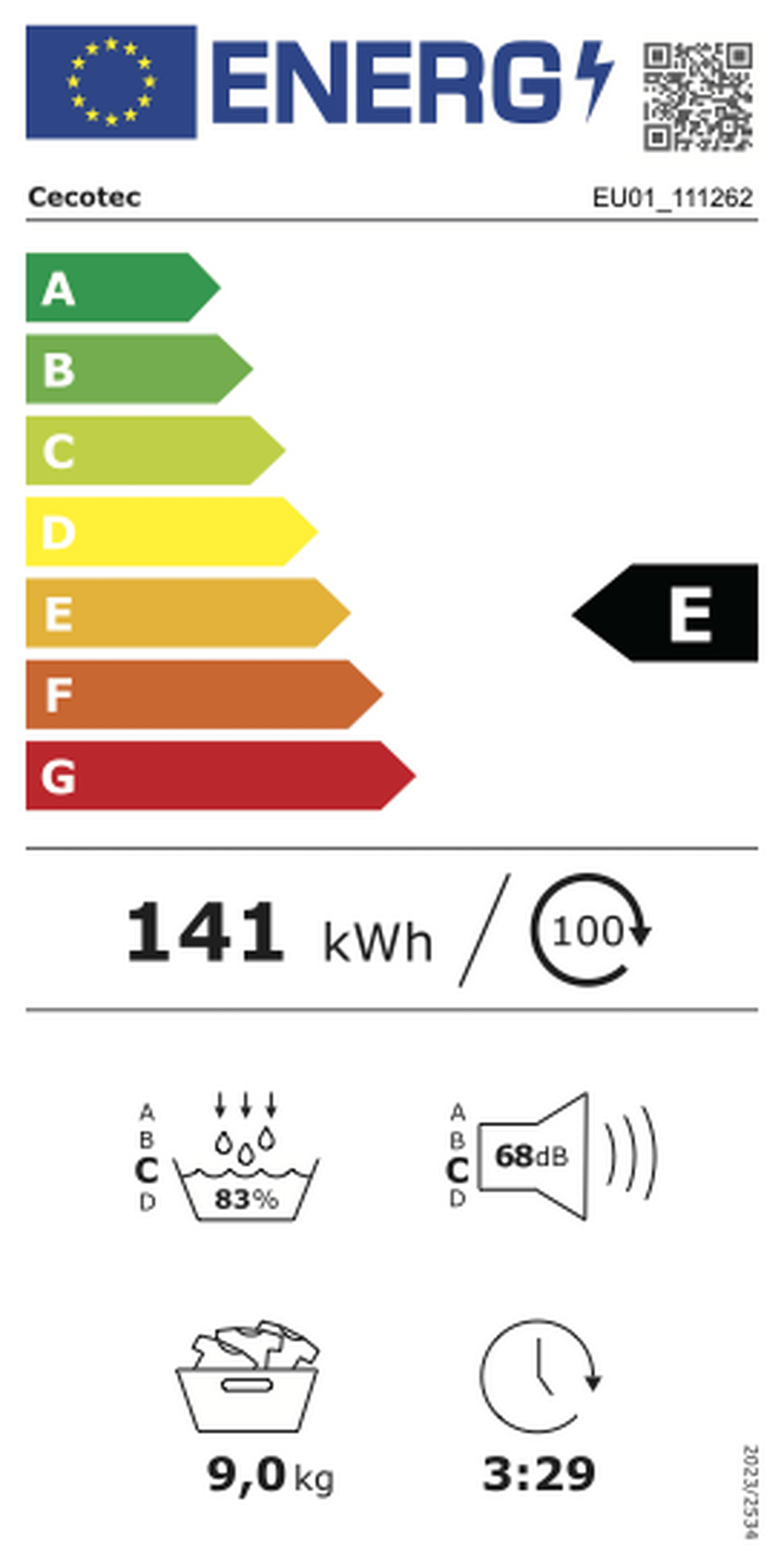 Esta máquina de secar roupa tem uma classificação energética E, de acordo com o novo regulamento, equivalente à antiga A++, garantindo poupanças de energia e um desempenho ecológico e económico.