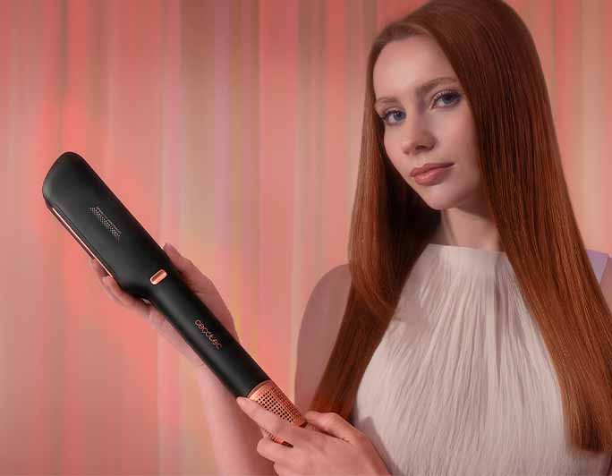Seu revestimento cerâmico com queratina e óleo de argan protege seus cabelos e proporciona um acabamento muito mais brilhante e macio graças à sua Tecnologia Air&Care.
